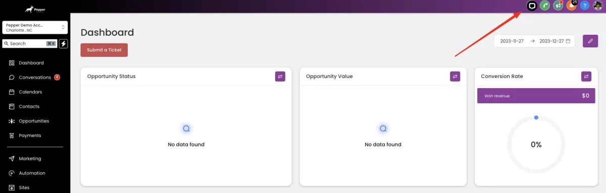 Step 1: Click the chat bubble at the top right side of your screen. This will usually take you to a dedicated page that contains a list of commonly asked questions and their respective answers.